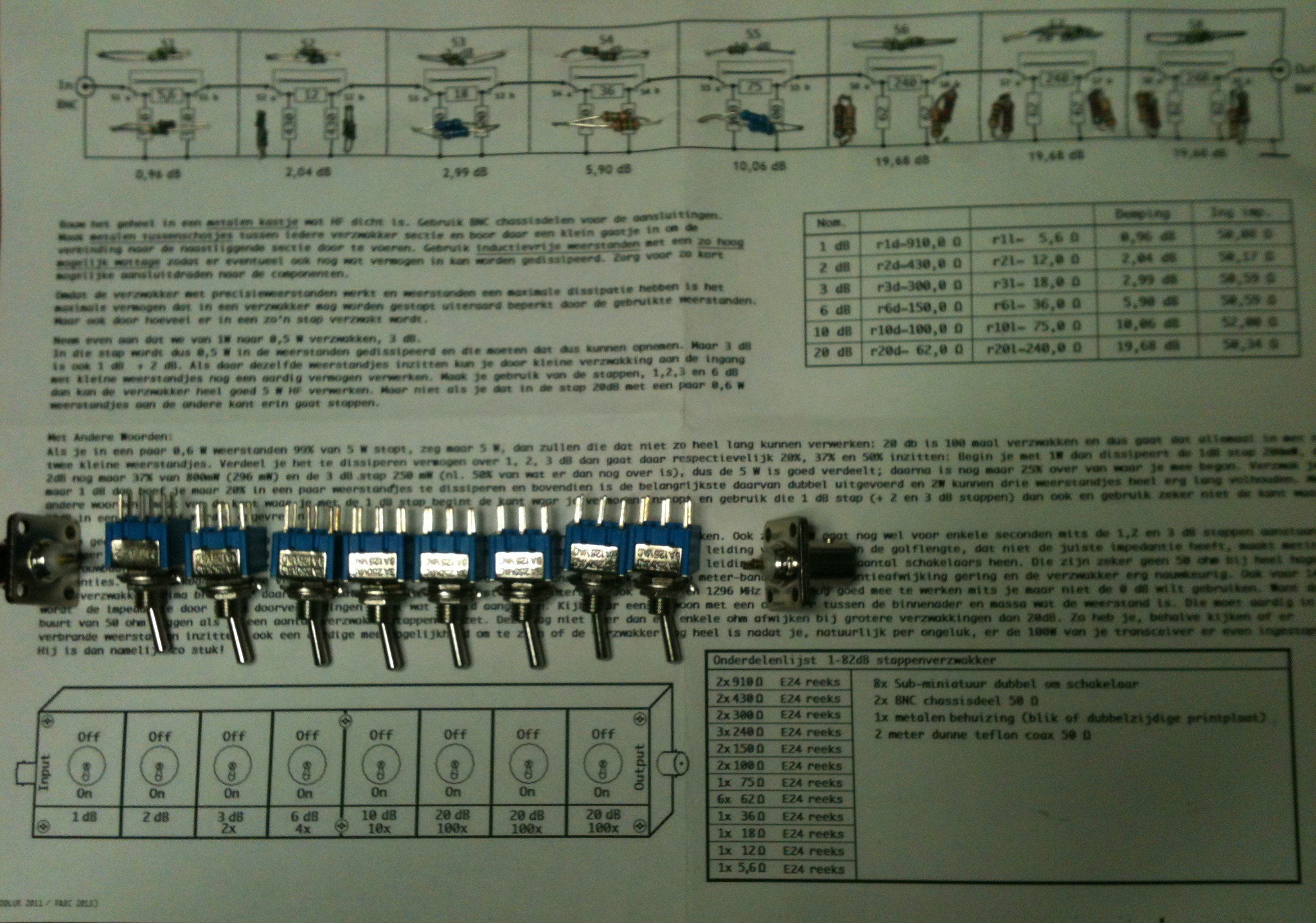 Stappen verzwakker 1-82dB bouw beschrijving
