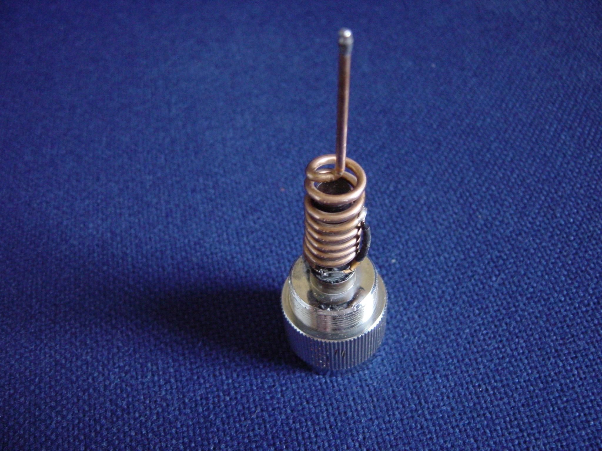 In de basis van deze antenne zit een aanpassings netwerk in de vorm van een spoel met aftakking voor het 50 ohms punt.