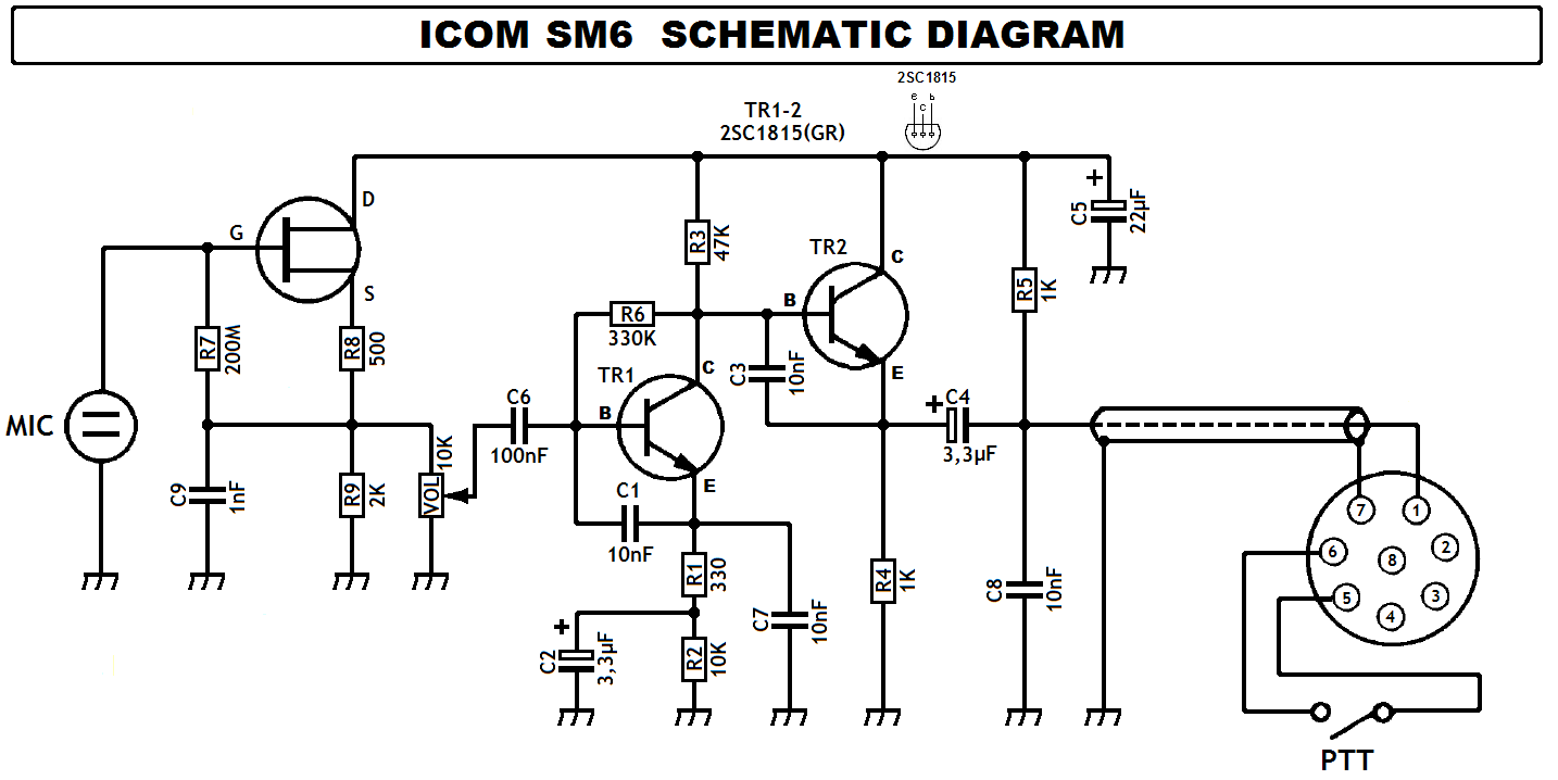 Hier het schema van de Icom SM-6 tafelmicrofoon.