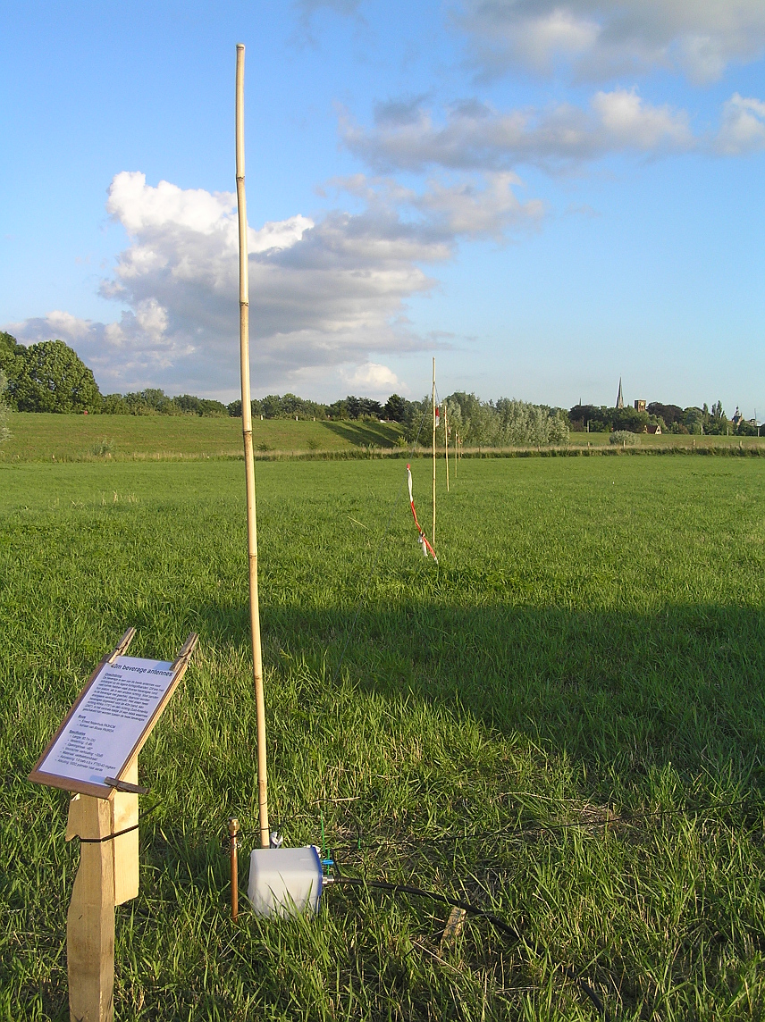 Nu zou het zo kunnen zijn dat de aardweerstand te hoog is. We hebben stukje koperen waterleiding gebruikt die ongeveer een halve meter de grond in zat, in de vette rivierklei (we zaten in de uiterwaarden langs de Lek). Er is nog een buitje regen overheen gegaan, en ik heb de aardpen zelfs nog even water gegeven (nee, hij ging niet groeien hi). Maar ook dit had allemaal geen effect. Dus ik twijfel of het wel aan de aardpen ligt.