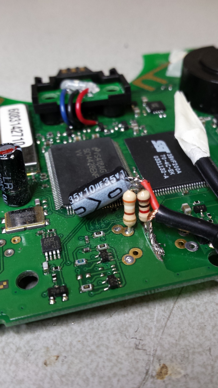 Hieronder het gecorrigeerde schema voor de audio aansluitingen. De 1K en 390R weerstanden waren door de auteur verwisseld. Op de foto’s staan ze dus juist gepositioneerd. Ik heb er voor gekozen op de condensator in de MIC circuit te vervangen voor een 1uF voor iets meer hoog in het signaal.