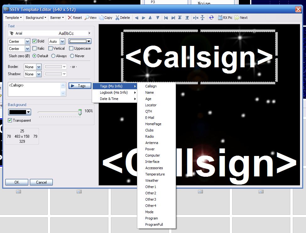 Je kunt enorm veel opties instellen. Zo zit er bijvooorbeeld ook al een FTP upload tool in (vergelijkbaar met KE5RS FTP-Widget, alleen dan ook je TX images), FSK/CW-ID, Autostop, PIP, VOX, etc. Veel opties zijn ook direct aan en uitschakelbaar met knoppen. Er worden Templates gebruikt om tekst te plaatsen op je uit te zenden afbeeldingen. Het voordeel van templates is, dat je deze als overlay kunt gebruiken op steeds weer een andere afbeelding en dat je deze overlay kunt aanpassen, zonder steeds je afbeeldingen aan te hoeven passen. Een andere leuke optie is de webcam optie. Zo kun je live een foto maken van jezelf of je shack en die versturen met de templates die je al had gemaakt.